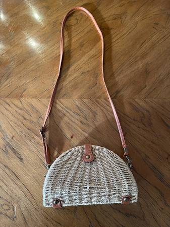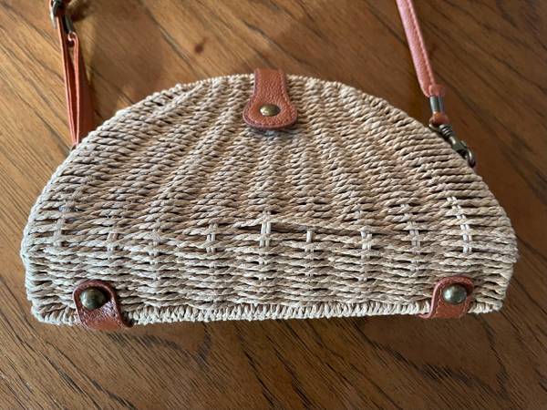 Adorable Brown Woven Crossbody Bag with Button Closure