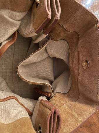 Condition: New (however, there is some damage to the shoulder strap as seen in the pictures. The shoulder strap is removable, in which case, you have a perfectly brand new flawless handbag. Comes with tags in pictures, but no additional boxes, tags or packaging.