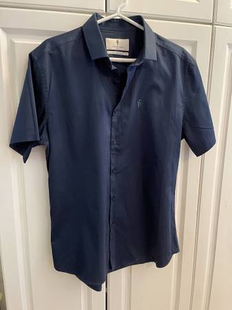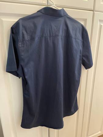 Men’s Father Sons Classic Navy Luxe Egyptian Cotton Short Sleeve Button Down XL Stretch Slim Fit