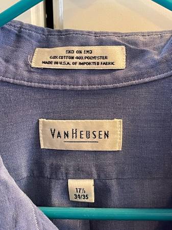 Like New Blue Men’s Van Heusen Button Down Dress Shirt Brand: Van Heusen Condition: Like New Color: Blue Size: 34/35 (17 1/2) Price: $10.00 Men’s Like New Alfani Slim Fit Black Suit Jacket Size 46R...