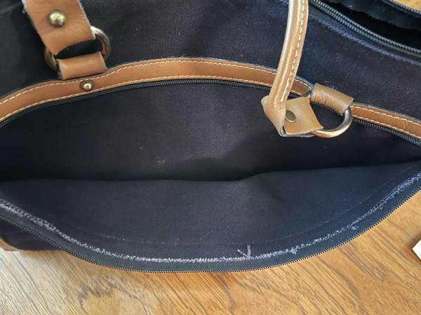 Condition: The bag portion itself is in like new condition, however there are a few imperfections in the material by the circles in the strap and on the one side of the inside pocket where the material is a little fuzzy (see pics). I would still say the overall bag is in very nice condition, but I did want to point out those flaws just so the buyer is aware.
