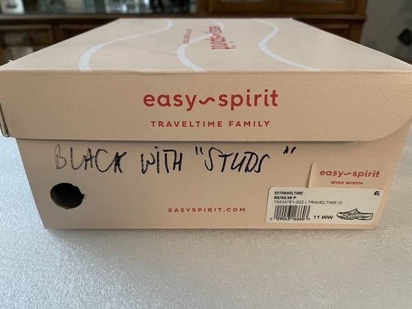 New Women’s Easy Spirit Traveltime Slip On Shoes - Size 11WW (Wide Width) - Black with Silver Studs Super lightweight Comfort cushioning Ultra flexible Price: $25.00 Check out my other listings for...