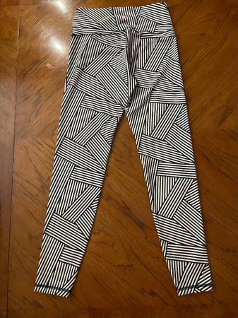 Women’s Old Navy Active Navy Blue and White Striped Patterned Leggings - Size Medium