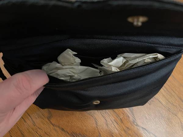 Condition: The stitching is a little bit loose in the upper right corner (see pics) and there are some very slight spots where the blue is chipped (see pics) but otherwise it’s in excellent condition.