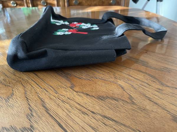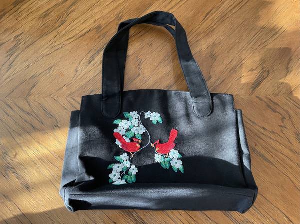 New (No boxes or tags) HipKnits LLC Black Handbag with Colorful Embroidered Bird and Floral Pattern