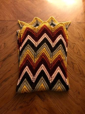 This one is hemmed together, so you stick your head in the middle and then fold it around to your liking