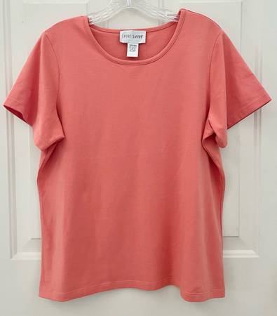 This Sport Savvy coral top is in excellent condition. Very soft, comfy and with a bit of stretch. Size is a Medium. Made in Jordan. 95% Cotton and 5% Spandex. If you are interested in purchasing, we can meet by the Walmart in Flanders/Target in Hackettstown. Just pick a day Monday through Sunday 10 AM - 6 PM. Can ship/bundle/purchase clothing using PayPal with additional cost using USPS rates that will be calculated.
