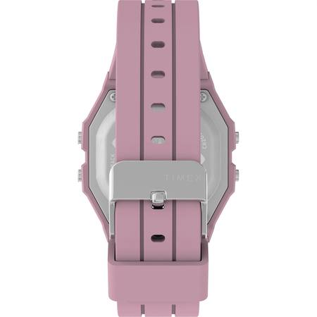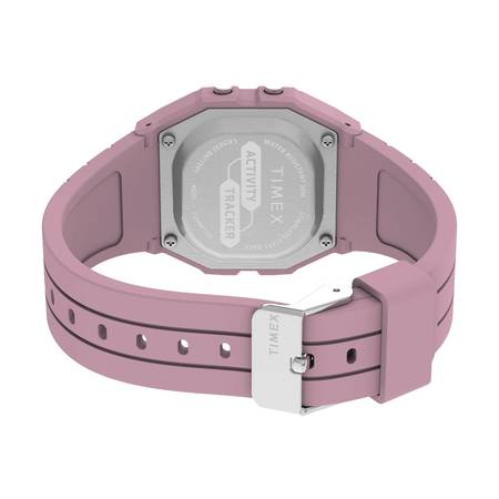 Featuring a 40mm pink resin case and strap, this digital watch offers essential features for tracking your daily activity and staying on schedule.