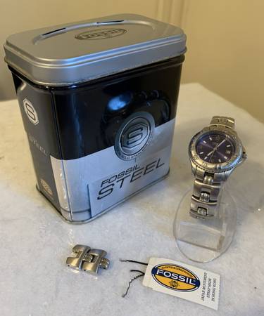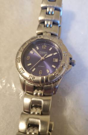 vintage Fossil Steel Blue Dial Silver Watch ($80)