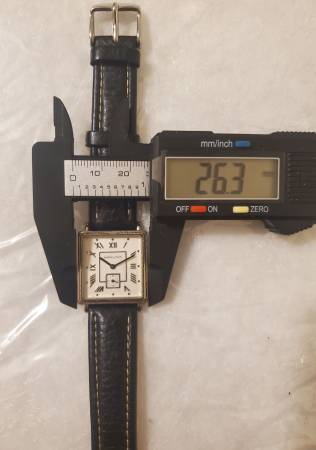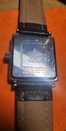 Case: The watch has a distinctive square-shaped, stainless steel silver-toned metal case.