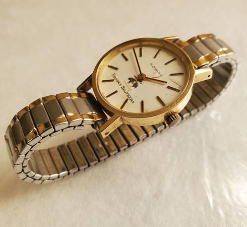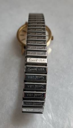 Vintage Movado Brooks Brothers watch featuring a gold-toned case and a two-tone (gold and silver) Speidel USA twist / flex metal link strap / band / bracelet.