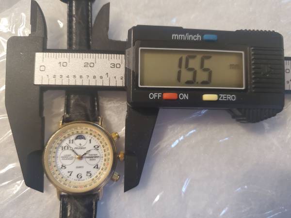 The watch features a Moon Phase window at the "12 o'clock" position - and two manual adjust day & date rings for a perpetual calendar feature.