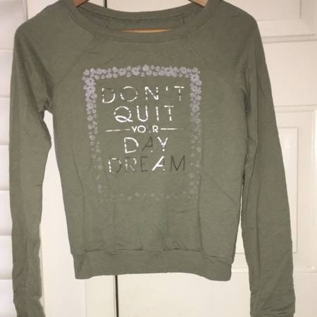 Hollister sweatshirts: -Olive -Light pink- a little bit cropped FREE White LS T w/ Roses Sz Small (faded pink stains from wash)