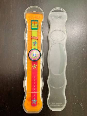 Rare VTG 2014 Flik Flak Turquoise Splashy & Flashy Quartz Watch ZFPNP005 Original Box and packing; Needs new battery.