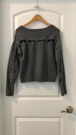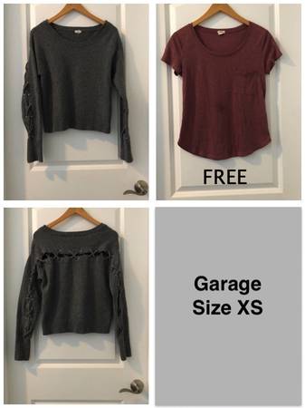 LS grey sweater with stitching detail SS heather red T (grease stain front belly) FREE w/ bundle