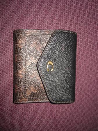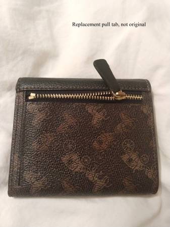 Coach Wyn brown wallet tri-fold. *Replacement pull tab* not original, black replacement tab seen in photo.