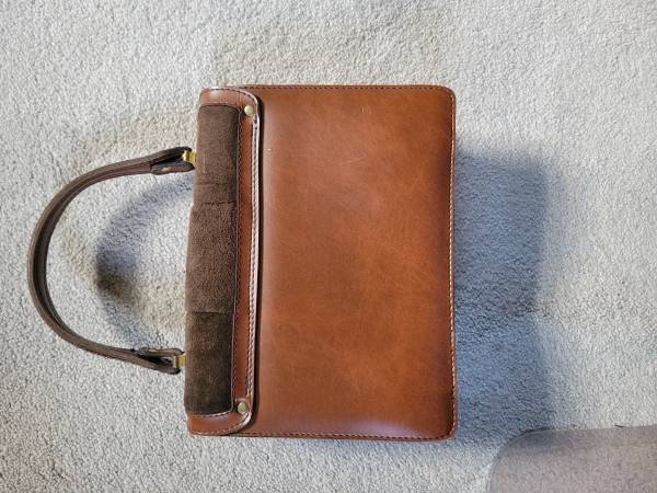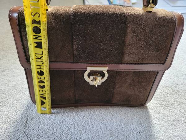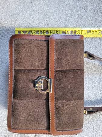 Suede Marli purse. It says made in Spain. It is in very good shape and has a short handle.