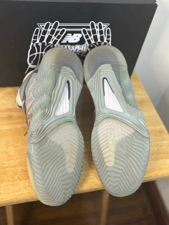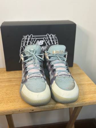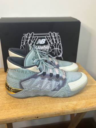 Selling my New Balance Kawhi II “New Money” in size 14. These are in good condition overall with some small cosmetic defects (light scuffs and wear on midsoles, a few marks on uppers shown in photos). Still plenty of life left and the gold heel details pop in person.