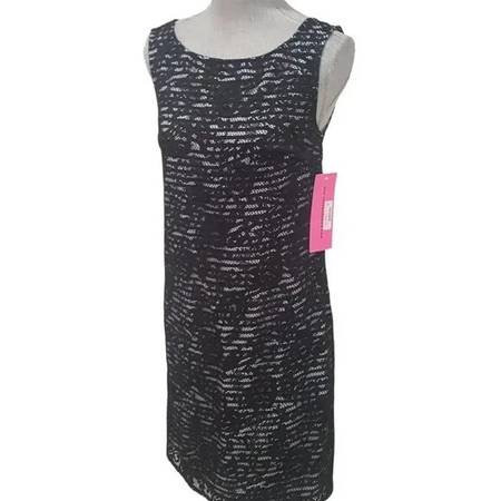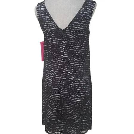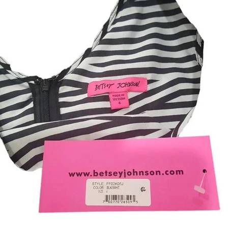 BETSEY JOHNSON BLACK WHITE DRESS NWT SIZE 4 NWT new with tags size 4 black / white polyester v back neck hidden zipper armpit to armpit is approx 16" shoulder to hem is approx 35" sold as shown in...