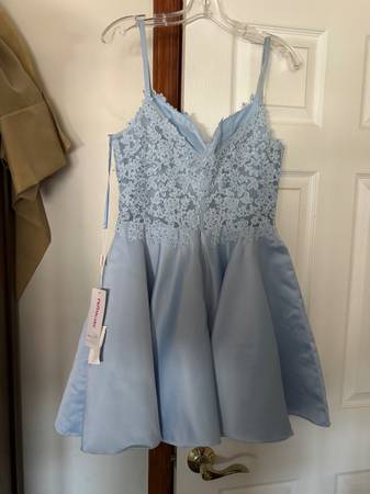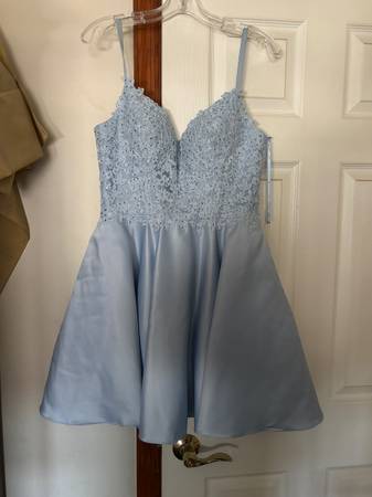 Up for sale is a Brand New Girl’s Pale Blue Embroidered-Lace-Applique Short Halloween Dress *Size L* with Tags still on it that would be Great for Any Kind of Party whether it be Halloween as a Fairy, Princess, Tinkerbell, Cinderella, Gala, Formal, Homecoming, Prom, Graduation, Sweet 16, Wedding, Semi-Formal or Banquet and/or Great for a Movie Role Costume/Outfit. It was Worn once and Professionally Dry Cleaned. Tis’ The Season! $100 takes it. It is located in Lyndhurst, NJ. Call me at show contact info