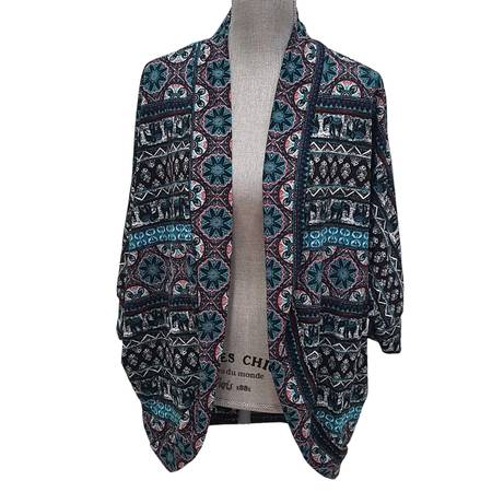 FRENCH LAUNDRY Women's Cardigan Multi Color Elephants NWT Large black blue multi color