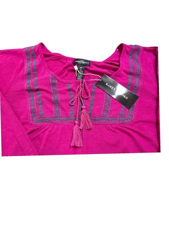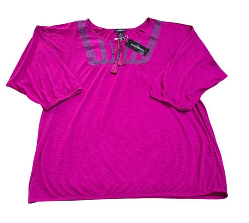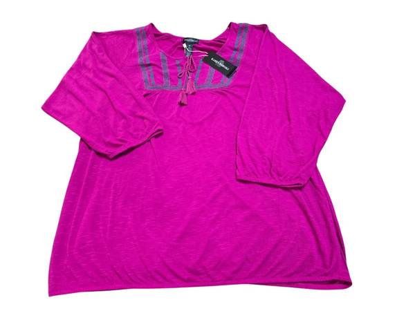 Karen Brooks Women's Fuschia Boho 3/4 Sleeve Embroidered Top NWT SIZE 2X NWT NEW WITH TAGS