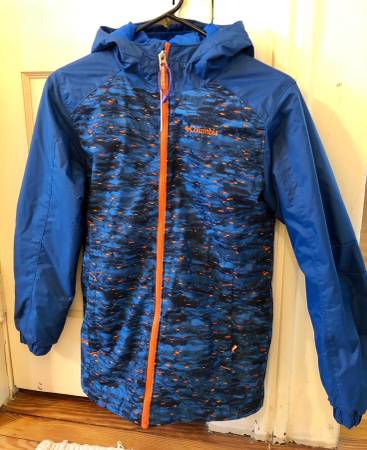 Like new boys jacket in blue and orange. Size M (10-12y) Jacket is light but warm - using thermal coil technology. from the tag: Snowpocalyptic jacket M youth / enfant It was overgrown very fast....