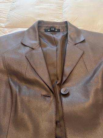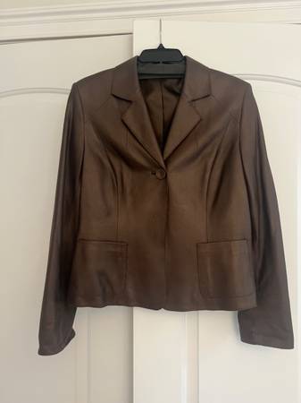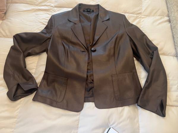 Brown Leather Jacket from Ellen Tracey Size 10 Lined Unfinished stitched edging Lightweight Smoke and pet free household