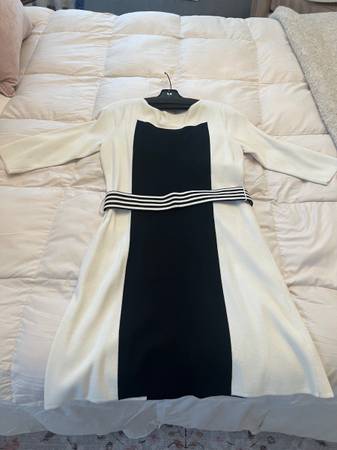 Cream and Black Belted Knit Dress by Milly of NY Size L Great Condition Smoke and pet free household