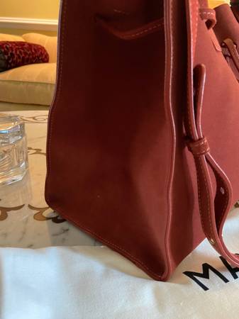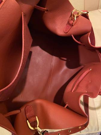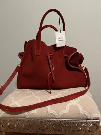 Two handles and Detachable shoulder strap with gold metal clasps.