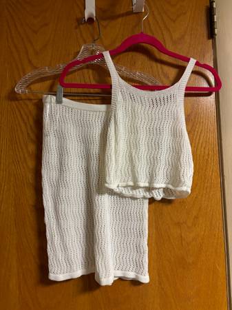 Two piece knit skirt and crop top, perfect for Bachelorette, honeymoon, or vacation, size medium, but runs small, worn once, Easy front porch pick up