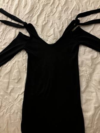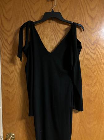 Black knit cold shoulder dress, size small, new without tags, ties on shoulder, looks great on, perfect for holdidays or coctail party easy front porch pick up