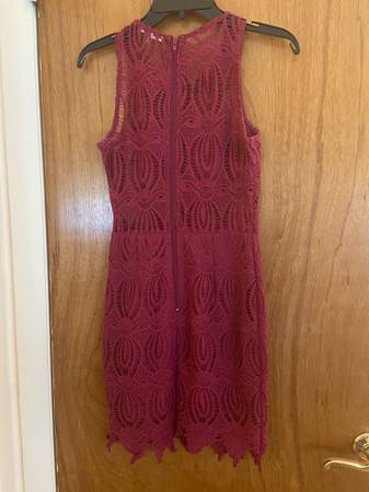 Beautiful lace, lined burgundy dress, size small, like new, junior small, perfect for the holidays or any fancy occasion. Easy front porch pick up