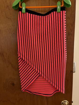 2 piece coral and black striped crop top and skirt, size small, jersey material Easy front porch pick up