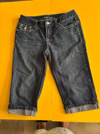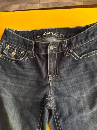 International Concepts, INC, size 4P regular fit, denim with white stitching and "crystal" buttons, cotton, polyester and spandex (see label) excellent condition, like new Easy front porch pick up