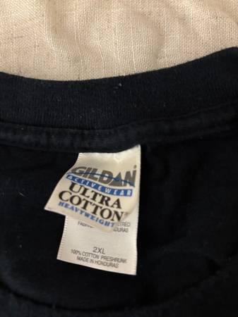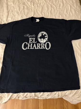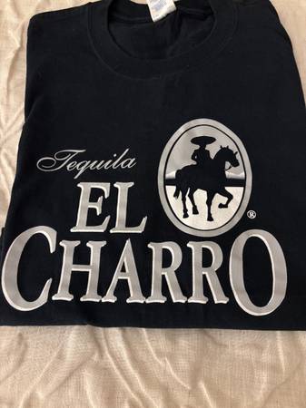 Men's heavyweight ultra cotton T shirt, black with silver and white lettering, picture of man wearing sombrero on a horse, short sleeves, size 2XL Easy front porch pick up