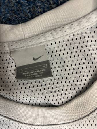 Nike sleeveless mesh shirt, size Large, light gray with black accents, washable
