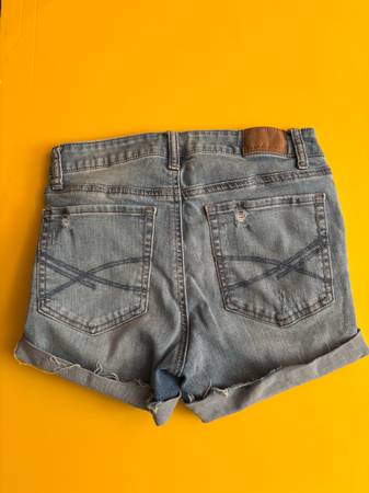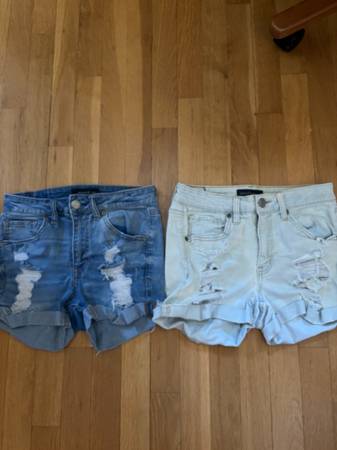 Two pair size 4, distressed Aero shorts, one medium wash, one light wash, flat zipper front buy both for $10. Easy front porch pick up
