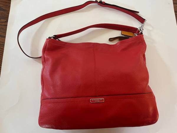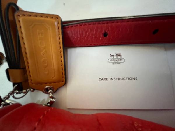 Beautiful Coach Red Handbag or Shoulder Bags or crossbody bag, with handle and adjustable strap.