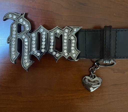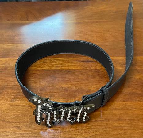 GUESS ROCK women’s black leather belt. Rhinestone buckle on 35.5 inch black belt with Guess Rocks charm. The buckle measures 4“ x 3 1/4“ tall. The belt width is 1 1/2 inches. $25