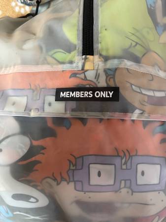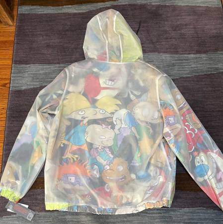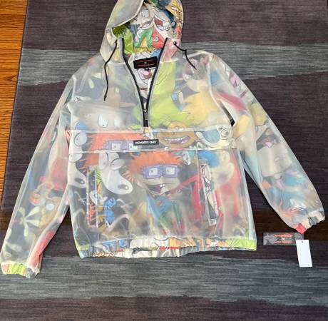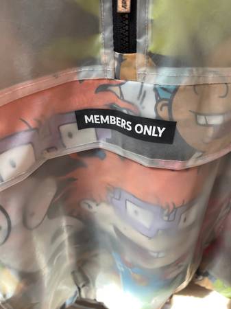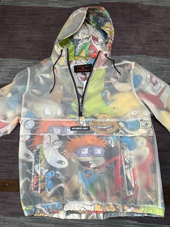 Vintage Members Only Translucent Pullover Half Zip Jacket / Raincoat. Vibrant multicolor design featuring iconic Nickelodeon characters. Designed for a comfortable fit in size XL. A unique jacket that is crafted from durable polyurethane outer shell with a softshell fabric type that offers both protection and flexibility. Brand new with tags. $30