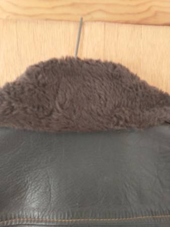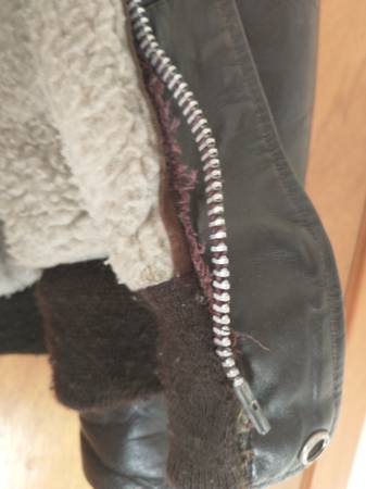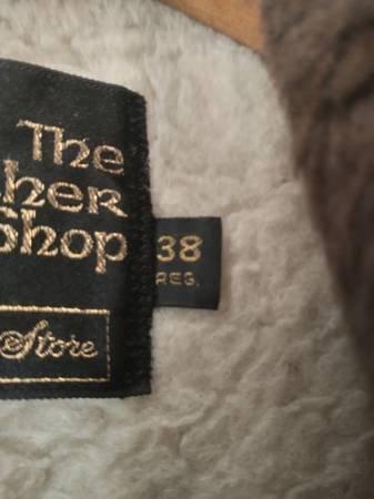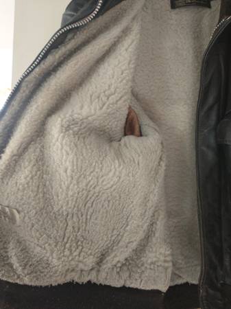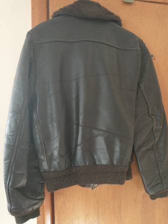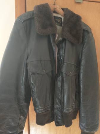 Very good condition leather bomber jacket Size 38 It will fit a skinnier male, probably somebody with a 30-32 inch waist The zipper is broken it needs a new zipper Two snaps are good It's a very...