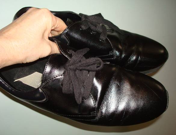 Black leather upper. (1) pair of ATHLETICS STYLE PLUS MEN's Marching Band Shoes. Pre-owned, good condition with lots of life left.