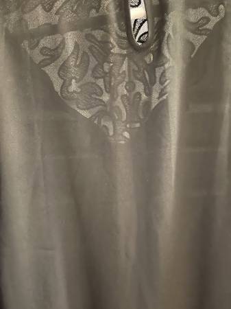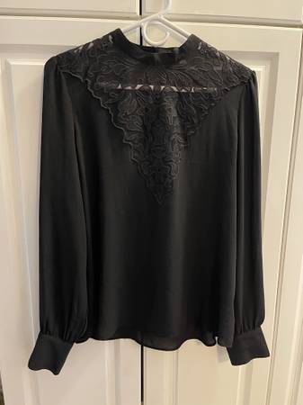 Elegant Forever 21 Black Blouse with a Lacey V Pattern on Front - Large - Somewhat Sheer - Like New