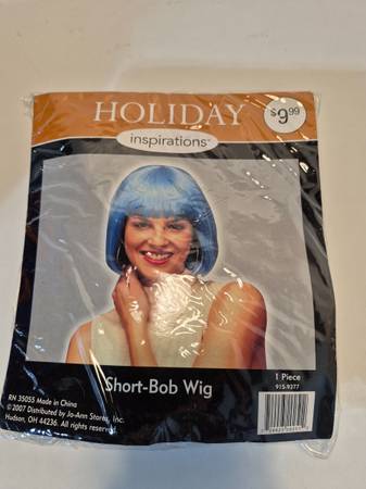 The light blue, straight bob wig is for sale $3. Happy Halloween 😆