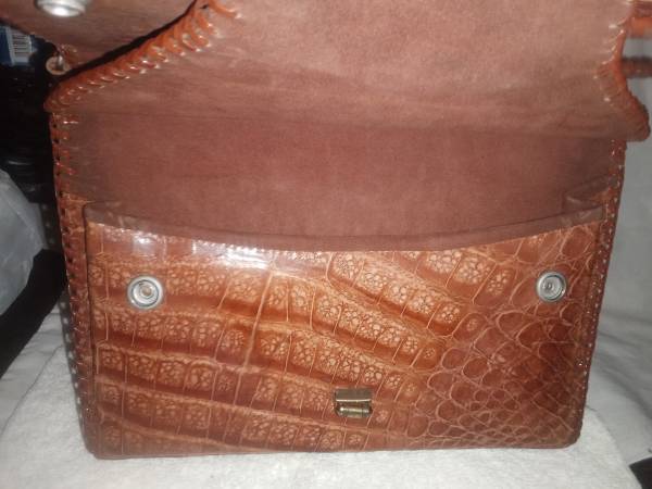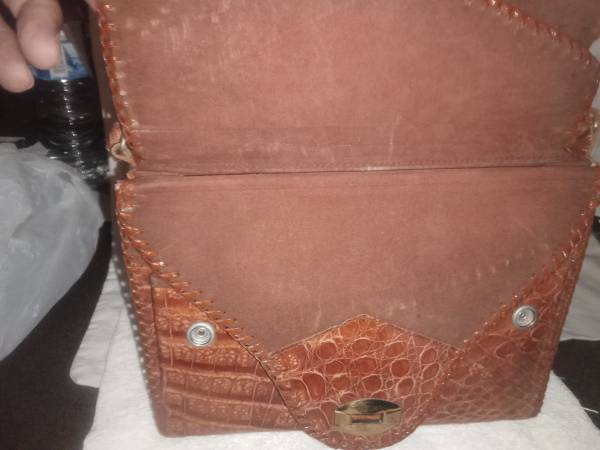 Similar vintage handbags can be found on online marketplaces, often categorized as "Crocodile/Alligator Clutch Brown Vintage Bags".