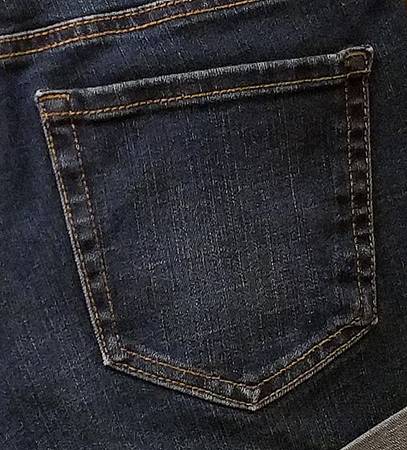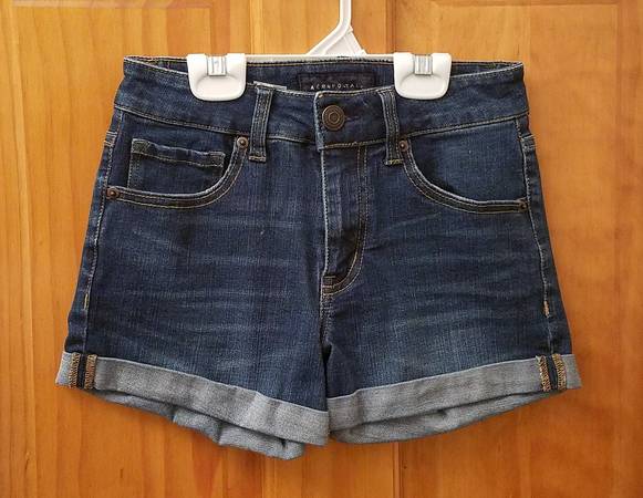 Womens Aeropostale Roll Cuff Medium Wash Denim Jean Flex Effects High Waisted Midi Shorts Size 0, selling for $12.
