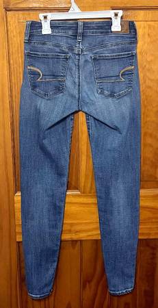 American Eagle Next Level Stretch Blue Medium Wash Hi-Rise Jegging Size 0 Regular, selling for $15.