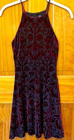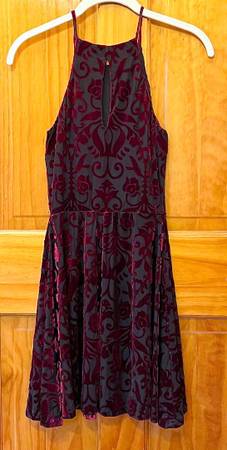 Design Lab Black Burgundy Sleeveless Velvet Party Mini Dress Size XSmall, selling for $20.