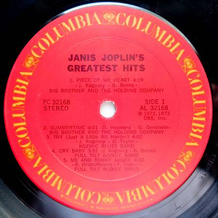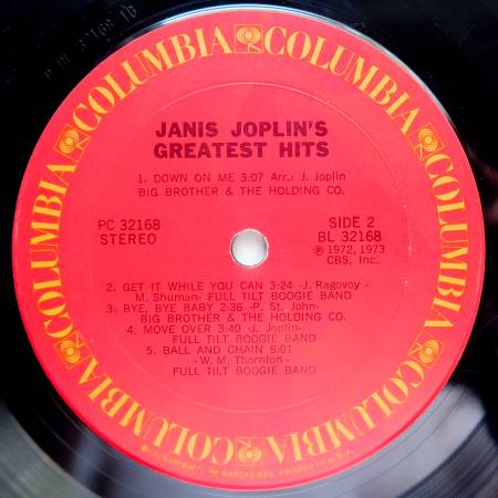 Janis Joplin "Janis Joplin's Greatest Hits" 1973. Good jacket. Original inner sleeve. Good vinyl. $8.